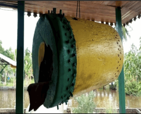 Pembuatan beduk ini menggunakan satu batang pohon yang dipotong menjadi beberapa bagian yang menghasilkan ketiga beduk di atas. Syarif Muhammad Alkadrie merupakan Sultan ke-VI yang memerintah di Kesultanan Pontianak. Dengan adanya beduk ini menjadi bukti peninggalan sejarah dari Sultan Syarif Muhammad Alkadrie.