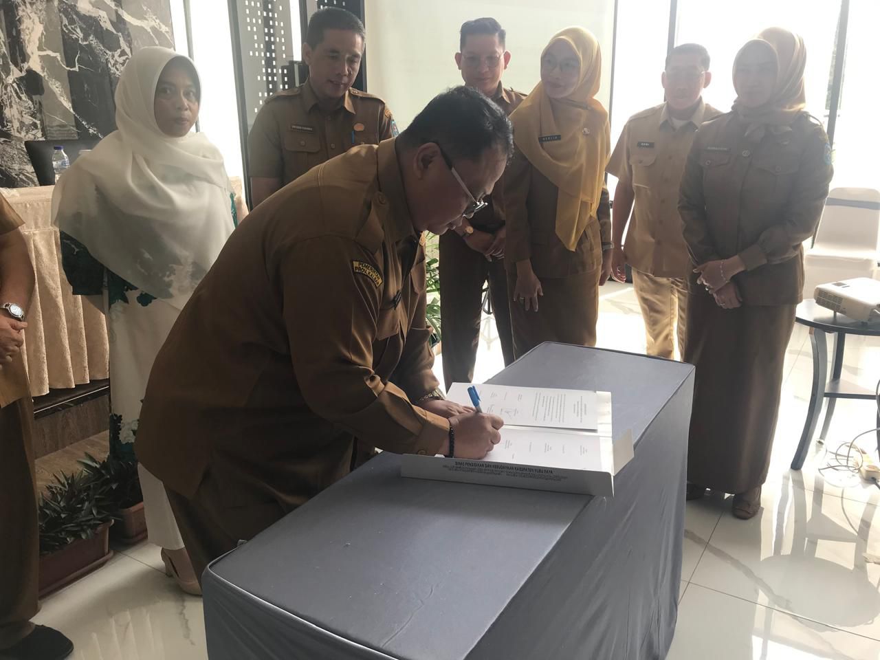 Dalam komitmen tersebut ditandatangani secara bersama oleh Sekretaris Daerah Kubu Raya, Asisten I Setda Kubu Raya beserta pimpinan instansi yakni Kepala Dinas Kominfo, Kepala Dinas Pendidikan dan Kebudayaan, Kepala Dinas Dukcapil, Kepala Dinas Sosial, Kepala Dinas Pemdes dan diketahui serta ditandatangani oleh Kepala Inspektorat Kubu Raya, Kepala BPMP Kalbar dan Kepala Perwakilan Ombudsman Kalbar. (*)